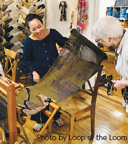 毎週金曜、「ループ・オブ・ザ・ルーム」ではファイバーアーティストの鶴田伸子さんが「さをり織り」を教えてくれる。織り方にルールがなく、自分の感じるままにただ好きに織っていくというフリースタイルの手織り技法で、メディテーションとしても注目される「さをり織り」。