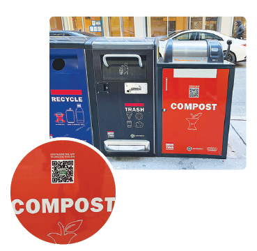 「Compost NYC」で検索するとNYCのホームページがトップに出てきたため、NYC.govのウェブサイトよりコンポストの設置場所を確認。意外にも自宅から徒歩1分の場所にコンポストが設置されていることに気付く。ごみ箱の横に並んでいたものの、注意深く見ていないせいか、普段は気付かなかった!