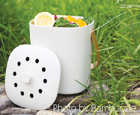 小型の可愛らしい見た目のコンポスト。フィルター付きのふたはガスと匂いの吸収に役立つので、生ごみを保管するのに最適な商品。食洗機でも使用できるため、清潔に使用を継続できる。小さく、取っ手が付いているので持ち運びも便利。