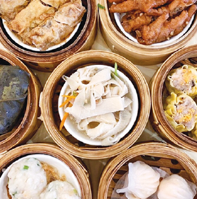 様々な種類の点心を一度に楽しめる老舗の点心専門店。春節に欠かせない水餃子や春巻きの味は抜群。他にも縁起のいいとされるお餅の種類も多く、大人数でシェアするには最適。