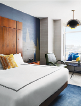 全216室を有し、今年3月ブルックリン区でも人気のウィリアムズバーグ地区にお目見えした。多国籍のニューヨークらしいイスラエル、レバノン料理レストランにルーフトップバーなど、若い層が好みそうなバラエティーに富んだ演出がされている。6月はプライド月間を祝したプランもある。
