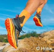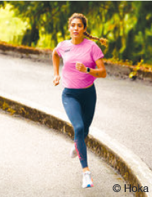 分厚いソールが特徴的なホカ。かかと部分とつま先部分の緩やかな曲線はランニング時のスムーズな足運びに貢献している