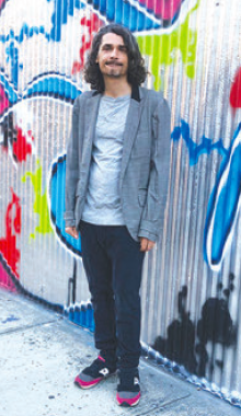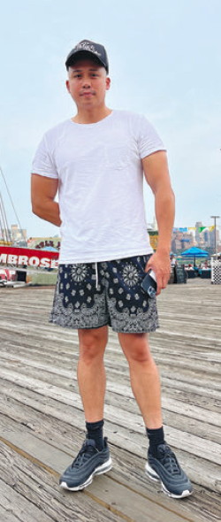 3000足以上を所有するスニーカーフリークのアンドリュー。1997年からの歴史を持つナイキの珠玉の人気作でもある「エアー・マックス97」を着用。史上初のビジブルエアを搭載し、履き心地の良さは随一。さまざまなブランドとコラボレーションし、カラーバリエーションを豊富に展開する根強い人気のモデルでもある。