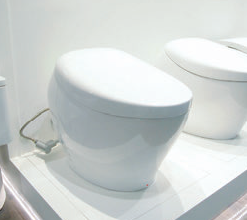 水を溜めるタンクがないタイプ。節水タイプが多いのも特長で、凹凸がない分、掃除も楽なのがいい。ウォシュレットだけでなく、抗菌、自動清掃、汚れがつきにくい機能など、美しいデザインと機能性の高さが融合したおしゃれなトイレ。TOTOの「ネオレスト」が有名だ。