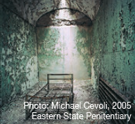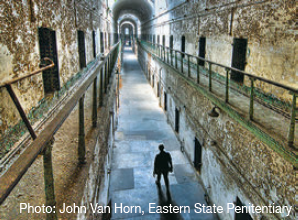 「犯罪者を労働を伴う孤独な監禁と厳格な規律によって矯正する」との考え方の下、1829年に開設。当時の米国の公共建造物では最大規模。ホワイトハウスよりも早く水道と全館暖房を完備した壮大な建物は先のコンセプトとともに世界中から注目を浴び見学者が殺到、瞬く間に3 0 0 以上の刑務所のモデルとなった。東京拘置所旧庁舎( 小菅刑務所)もその一つだ。1971年に閉鎖されるまで8万5000人以上を収容。後に国定歴史建造物に指定され、博物館として一般に公開している。1929年5月から9カ月間収監されたアル・カポネの部屋は必見。