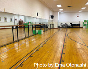 写真は、正面の大きな鏡を見ながら練習できる大リハーサルホール