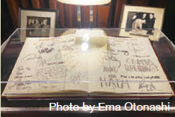座り心地のいい椅子に座って、創設から現在までの歴史を学ぶ
