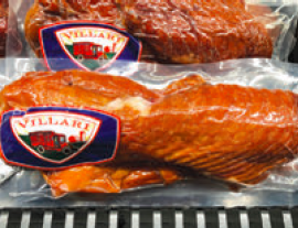オーブンで軽く温めるだけのターキーの燻製。肉厚でお手頃価格