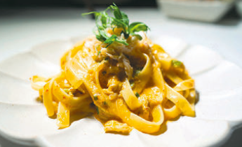 タラバ蟹をふんだんに使用したマラクリームソースのフェットチーネパスタ
