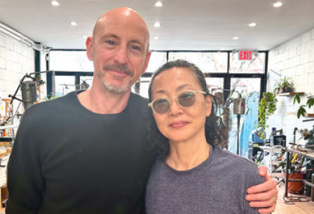 埼玉県川越市出身のヒロヨさんとアイルランド共和国ダブリン市出身のマイケルさんはともにジュエリーデザイナー。ヒップな街ウィリアムズバーグ地区で人気の宝飾店を営んでいる。出会いは、ヒロヨさんが勤めていたブルックリン区の工房にマイケルさんが間借りしたのがきっかけ。