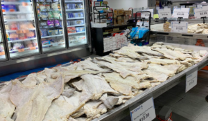 ポルトガル系スーパーマーケット。まずは、鮮魚コーナーの手前にあるバカリャウ売り場へ。チョリソ(サラミ)や生ハム、豚皮の唐揚げチチャロン(クセになる味)、パステル・デ・ナタ(エッグカスタード)は必ず買って帰りたい。売れ筋商品は他に、リスボン産のミネラルウォーター「ルソ(LUSO)」や、地中海産シーソルト、バカリャウのオリーブオイル漬け(缶詰)など。