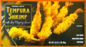 多くの在米日本人に愛されているトレジョの冷凍かき揚げ&エビの天ぷら。付属のタレは甘く濃い味で、ご飯と合わせればたちまちお店の天丼に!お弁当のおかずとしても定番人気の商品だ。