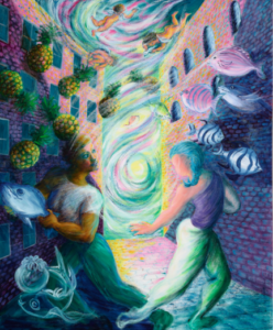 篠原アレックス空海は、具象表現と物語性を軸に、ストリートカルチャーや都市環境の感覚を取り入れた絵画・彫刻を制作するアーティストです。ブルックリンを拠点に、ダンボにあるスタジオを両親である篠原乃り子、篠原有司男と共有しながら、独自の表現世界を築いてきました。