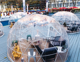 限定ホットチョコレートなどの他、ホリデーグッズも購入できる。イグルーで食べるのも今年ならでは Photos by Angelito Jusay