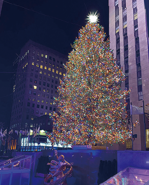例年は人だかりで正面からでも撮影が難しいが、制限のおかげでゆっくり撮影できるのがうれしい。また、遠方から来場できない人のために、今年はツリーの映像をライブ配信している(詳細はウェブサイトを確認)。来年1月上旬まで、朝6時〜深夜0時に点灯予定。またスケートリンクは要予約で、ツリーとは別の入り口から入場する。係員にチケット提示をお忘れなく。