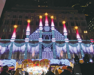 5番街にあるサックス・フィフス・アベニューの外壁のライトアップショーとショーウインドーは、通り掛かるだけでもウキウキして気分が上がる。毎年少しずつ違う曲とショーを見て楽しもう! 2021年1月4日(月)まで開催。