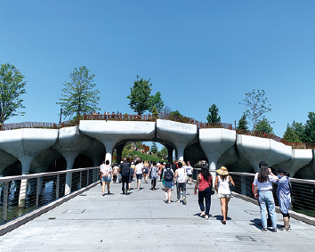 公園は白い花の蕾のような集まりによって形成され、園内は起伏のある丘のような形状になっている。エンパイアステートビルやワン・ワールド・トレードセンタービルなど、ニューヨークのランドマークを一望することができる。イベントステージもあり、音楽鑑賞やライブパフォーマンスの観戦もできる。ほとんどのチケットは無料だが、予約が必要だ。園内のところどころにアート作品もあり、フードベンダーもあるので家族でも楽しめるだろう。