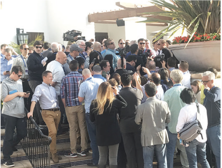 2018年、GM会議でのワンシーン。スコット・ボラス代理人の会見では多くの記者が集結