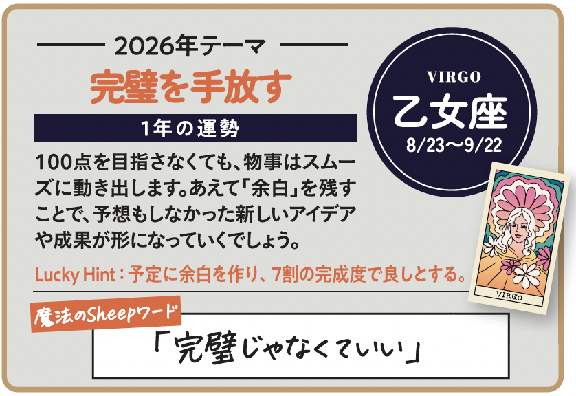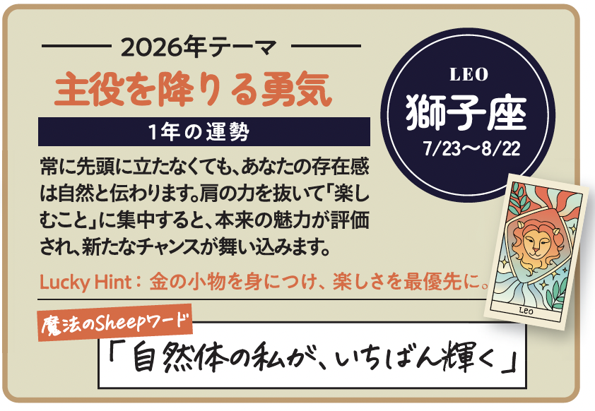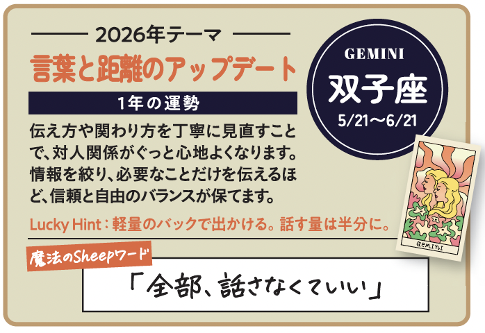 星の世界で見る26年は、「早く移行できた人」が得をする年ではありません。「柔軟に切り替えられた人」が、自然と次のポジションに収まっていく年です。古いやり方に固執するより、試しながらアップデートする。完璧を待たずに、まず使ってみる。その軽やかさが、AI時代の最大の武器になります。