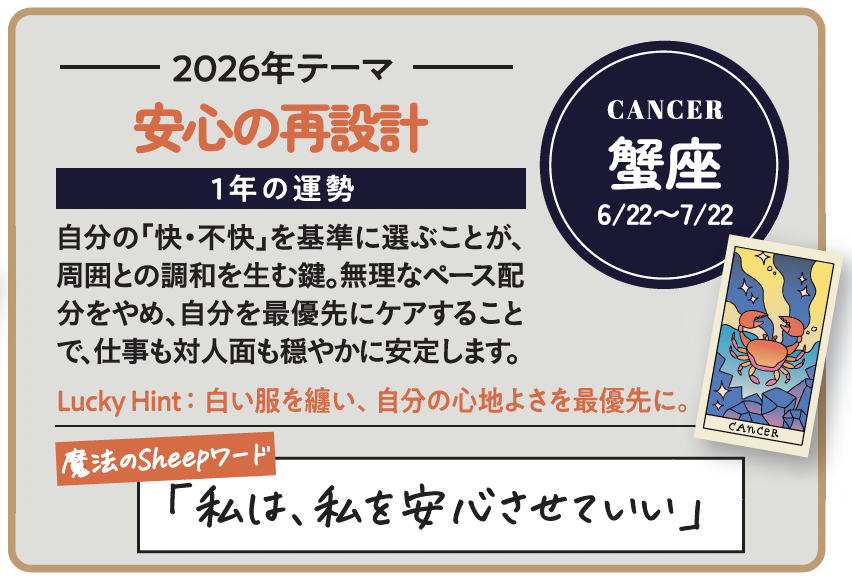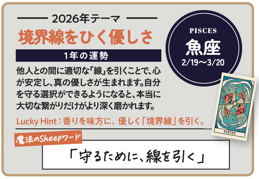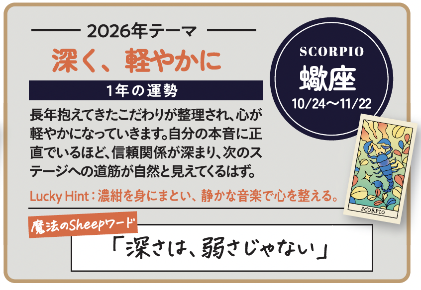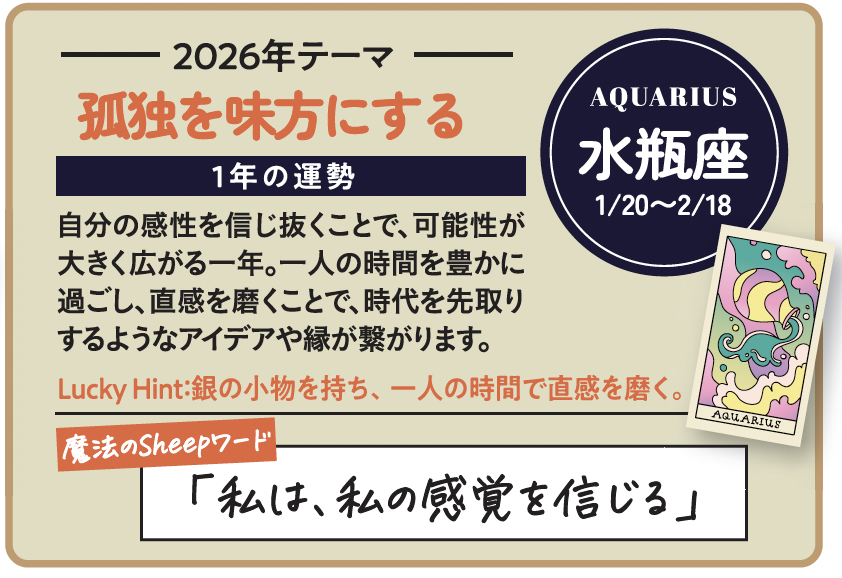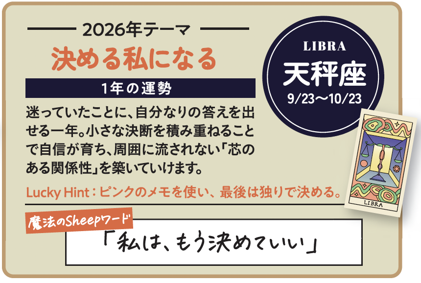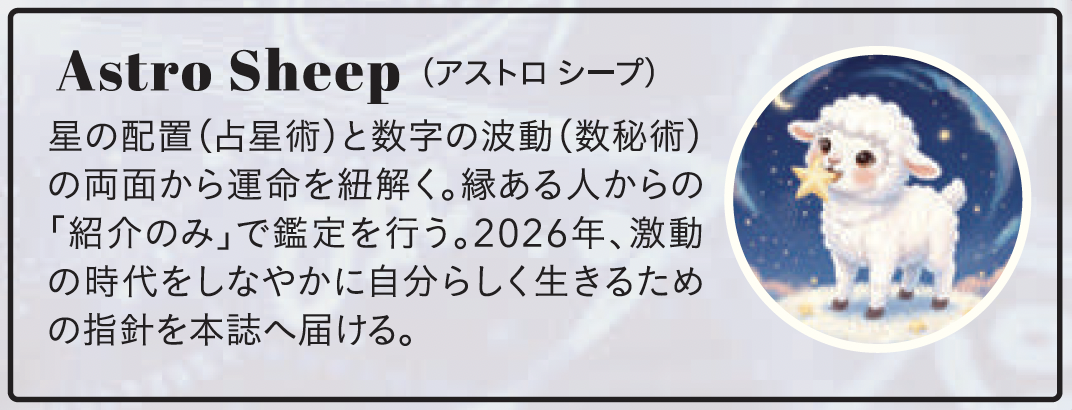 26年は、「正解を探す年」ではありません。自分なりの基準を持ち、早めに新しい時代へ移行できるかどうか。星はその選択を、静かに後押ししています。