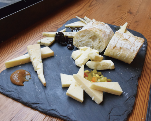 丁寧に作られたチーズを一層おいしく食べるペアリングとは? クリストファーさんいわく、「一番いい組み合わせは、自分の鼻が知っている(“Your noes knows”)」。物は試しと、テースティングプレートを用意してくれた。同店のフラグシップ(オリジナルフレーバー)チーズには刻んだピクルス、スモーキーな薫製チーズにはキャラメルマスタード。そして味の濃いブルーチーズの相手は、なんとチョコレート。これがなかなかいける。