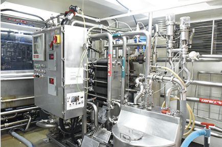 乳をカ氏163度(セ氏約73度)で24秒間、急速加熱して有害なバクテリアを除去。その後、カ氏89度(セ氏約32度)まで冷ます