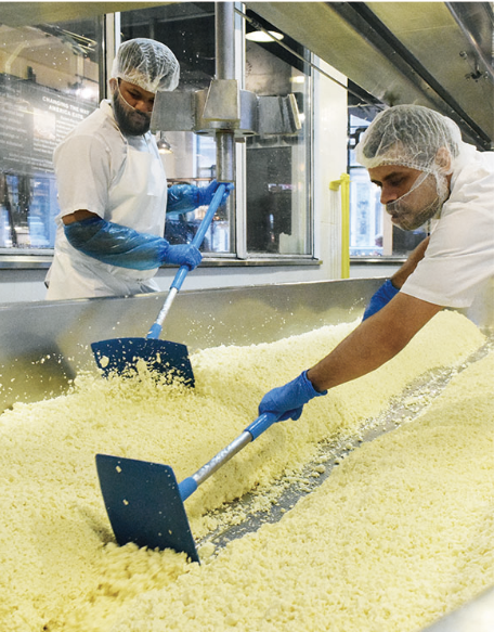 発酵させてから低温殺菌し、バクテリアを配合。成形したものを乾燥・熟成させればチーズの出来上がりだ。その生産量は、実に毎日5万4000ポンド(約24・5トン)!