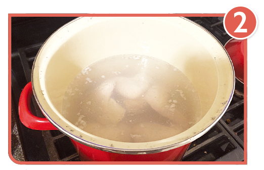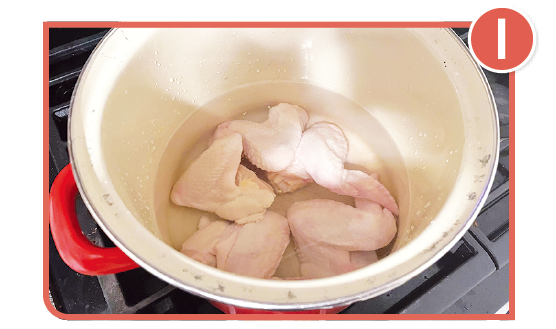 手羽先と水を鍋に入れる。水から煮出すのがポイント。