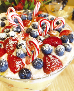 クリスマスシーズンに欠かせない「トライフル」です。スポンジとフルーツ、クリームが層になった華やかな見た目でパーティーにぴったり♪