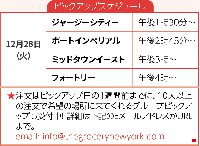 今月28日(火)には、限定で年越しそばキット(27ドル)とおせちキット(90ドル)も販売予定。「年越しはやっぱり日本食を楽しみたい!」という人はサイト(thegrocerynewyork.com)をチェックしてみよう。