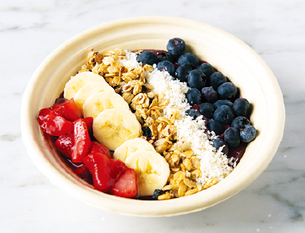新鮮なフルーツと野菜を使ったコールドプレスジュースやスムージー、栄養価の高い果汁をぎゅっと凝縮したジュースショットのほか、サンドイッチやアサイーボウルといったフードメニューも味わえる。