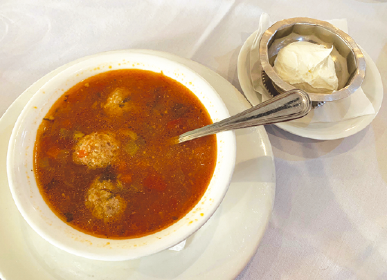 サニーサイドのルーマニア料理専門店、「ルーマニアガーデン」のショルバ・デ・ペリソアレは、本場の味を忠実に再現。大きめのミートボールがゴロゴロ入って食べ応えたっぷり。店で一番人気のスープだそうだ。
