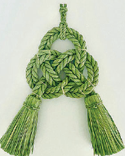 毎年しめ縄を入り口に飾りますが、今回は高千穂の藁細工、祝い結びを用意しました。しっかりとした結び目が家族の絆を象徴しています