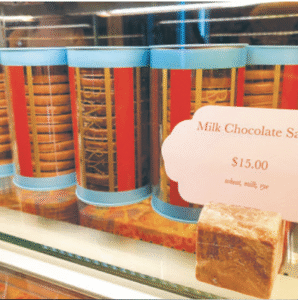 「ミルクチョコレートサブレ(15ドル)」はサクッと食感がたまらないミルクチョコレートコーティングのサブレビスケット。比較的手頃な価格帯で気軽な手土産にもぴったり。