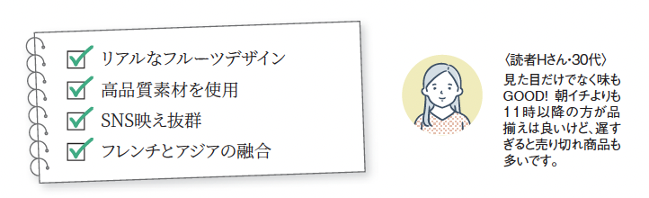 シグネチャーメニューは、まるで本物の果物のようにリアルなビジュアルのフルーツ型のケーキ。見た目のインパクトだけでなく、果実の風味までも忠実に再現され、視覚と味覚の両面で楽しませてくれる。他にも、抹茶や黒胡麻といった和のフレーバーを取り入れたケーキは、日本人の味覚にも心地よくフィットする逸品だ。センスが光る手土産として、ぜひレパートリーに加えてみては。