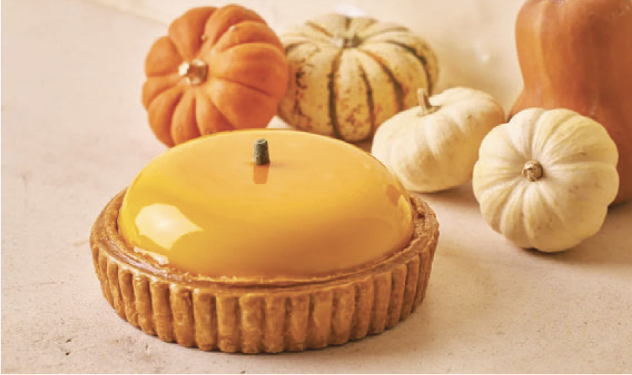 「パンプキンパイ(95ドル)」ローストしたハニーナッツスクワッシュに、スパイス香るフランとチーズケーキムースを重ねた特製パンプキンパイ。ナッツ不使用なのでどなたにも安心。サンクAux Merveilleux de Fred スギビング限定商品で受け取り期間は11月11日~30日