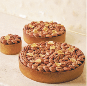 「ピーカンタルト 塩バニラクリーム添え(17.5ドル~)」香ばしいエリオットピーカンと濃厚なブラウンライスキャラメルを 使用した、贅沢なピーカンタルト。塩バニラクリームがアクセントで、 特別な日のデザートに最適。こちらもサンクスギビング限定商品。