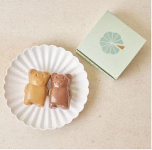 「テディベアデュオ2.0(16ドル)」可愛らしいテディベア型 マドレーヌのペア。ミルクチョコレートにはチョコレートヘーゼルナッ ツスプレッドを、ヴァローナのデュルセイチョコレートにはメープルの 風味を加え、香ばしく濃厚な味わいに。