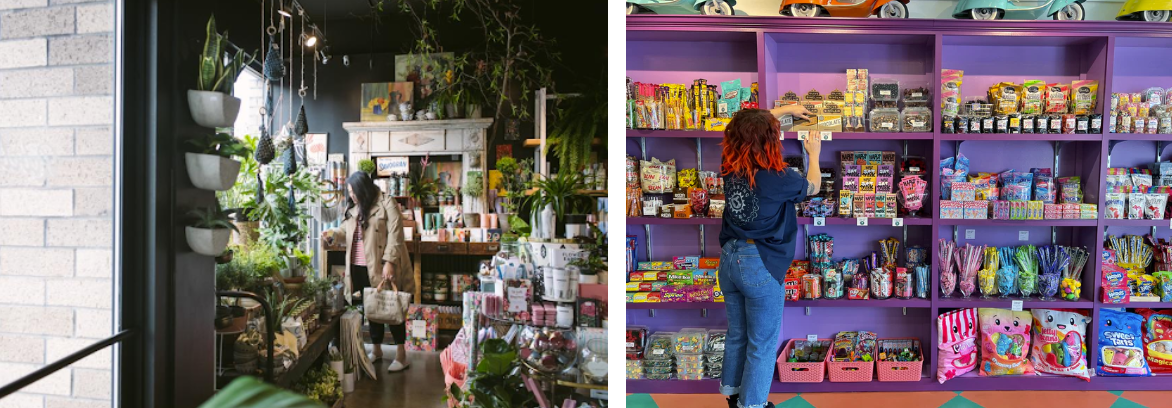 自称「グランドラピッズで1番のギフトショップ」。個性的なキャンドルから美しい観葉植物まで幅広く揃う。オープンな店舗で、ペットも含め誰でも温かく迎え入れてくれる雰囲気が嬉しい。1ブロック隣にある姉妹店「Sticky Fingers」は、見た目からして子供心がくすぐられるカラフルでポップなアメリカ版駄菓子屋。目移りしてついつい長居してしまう。