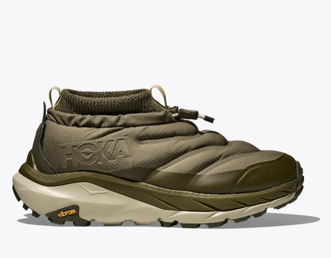 HOKAのスノーシューズ。GORE-TEX防水で雨雪に強く、保温性も抜群。スリッポンで着脱しやすく、存在感あるデザインが冬コーデに映える頼れる一足。