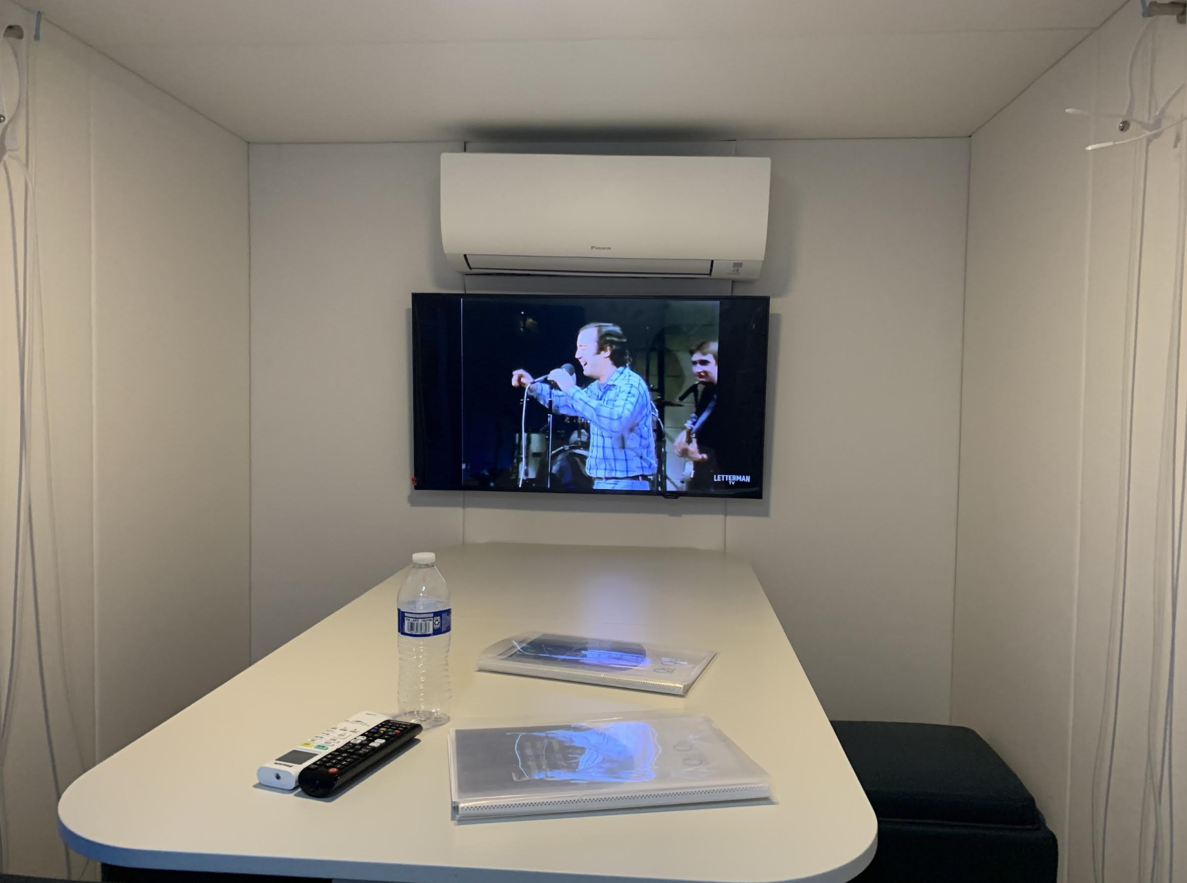 中にはテーブルや椅子、テレビもあり、まるでミニ会議室
